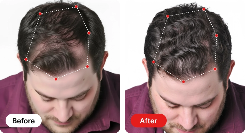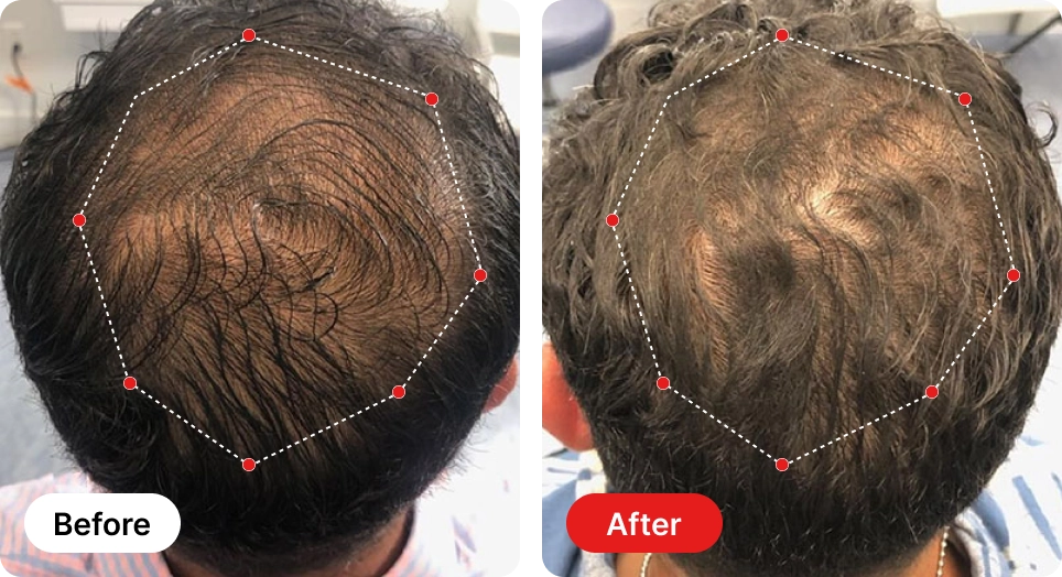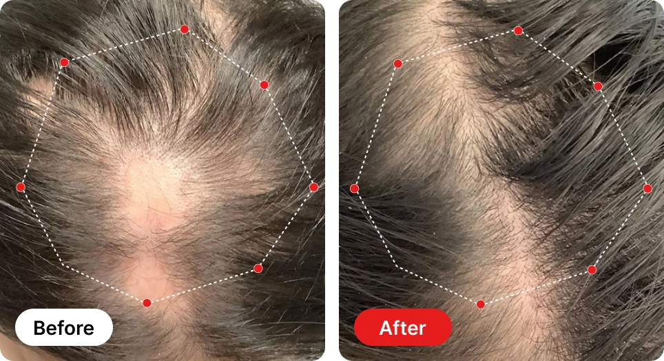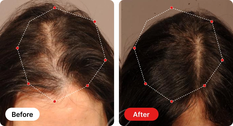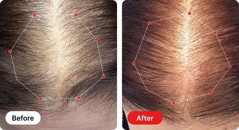 See and feel visible improvements — denser roots, stronger strands, and new growth along the hairline and crown.